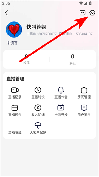 2、在個人頁面中,點擊右上角的設(shè)置圖標(biāo),進(jìn)入設(shè)置界面。