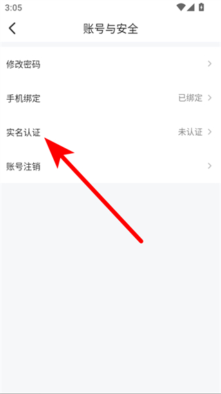 4、在賬號與安全頁面,點擊實名認(rèn)證選項,按提示完成實名認(rèn)證操作。