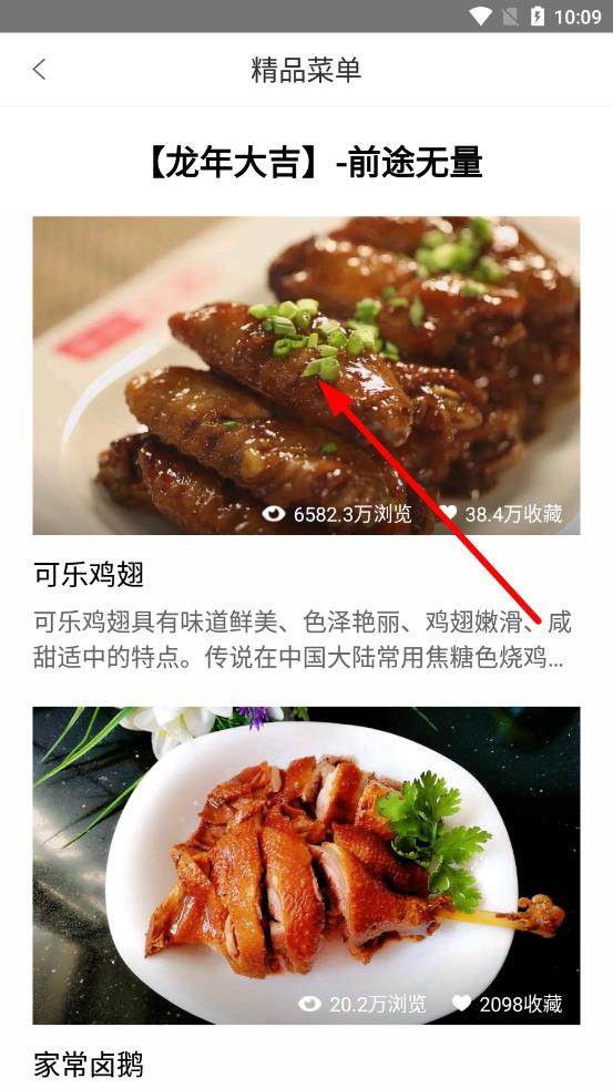 1、在美食類應用的精品菜單頁面,找到你想要查看配料表的食譜,點擊該菜品的區(qū)域。