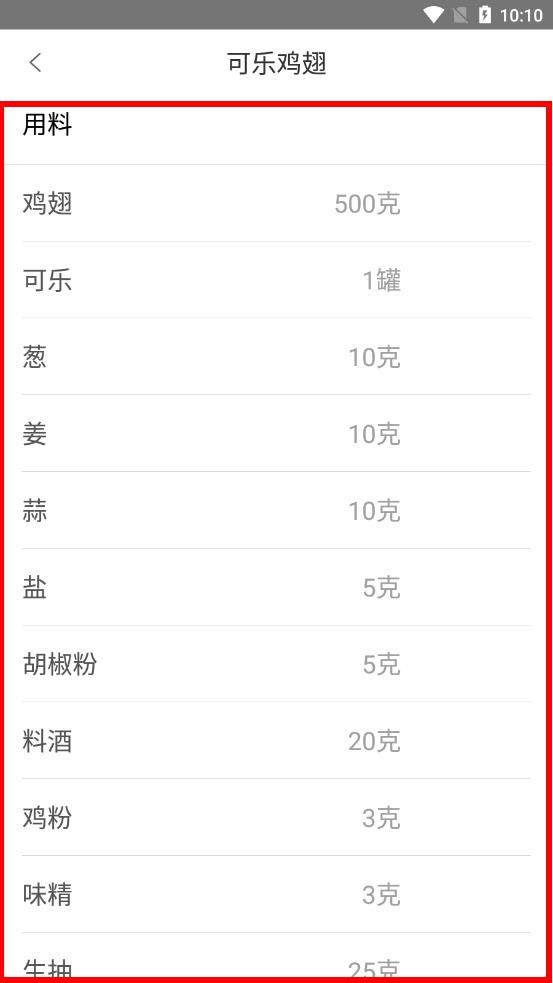 2、進入菜品詳情頁面后下滑頁面,你可以清晰看到制作該早餐食譜所需的各種配料及其對應的用量等信息。
