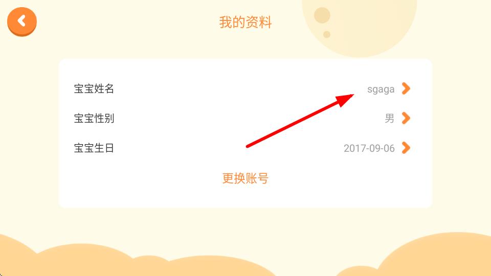 3、進(jìn)入我的資料頁面,點(diǎn)擊寶寶姓名選項(xiàng)。