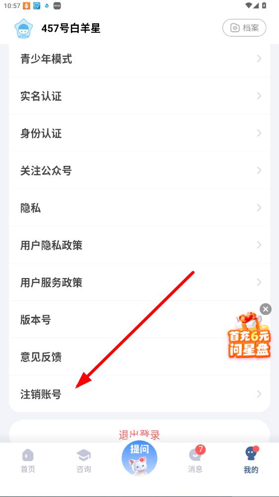 2、在個人頁面中,向下滑動,點擊注銷賬號選項。