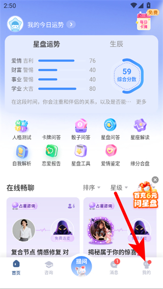 1.提問新增懸賞模式,類型新增塔羅和星盤提問