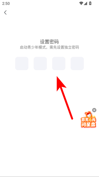 4、在設(shè)置密碼頁面設(shè)置獨立密碼,即可完成知星APP青少年模式的開啟。