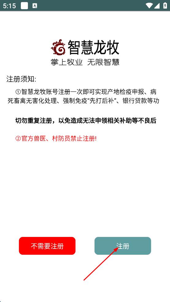 4、按照后續(xù)提示,依次填寫相關注冊信息,完成信息提交后,即可完成智慧龍牧APP的注冊操作,后續(xù)可使用注冊賬號登錄APP。