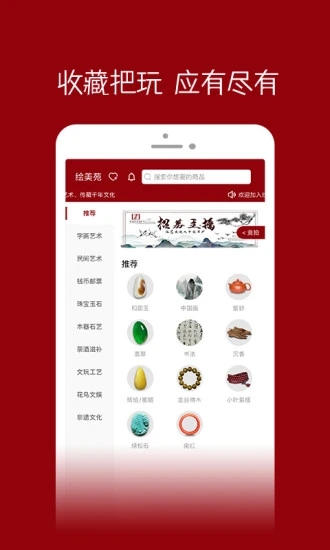 2、商品豐富,優(yōu)選品質(zhì),軟件上匯聚了各種不同類型的文化藝術(shù)商品,種類非常多樣,收藏把玩應(yīng)有盡有,全部質(zhì)量保障;