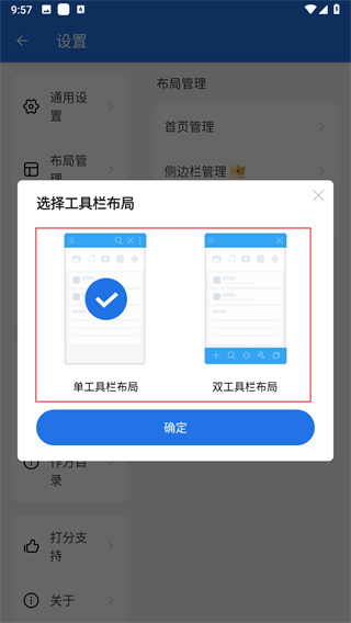 4、選擇單工具欄布局或雙工具欄布局,點(diǎn)擊確定按鈕。