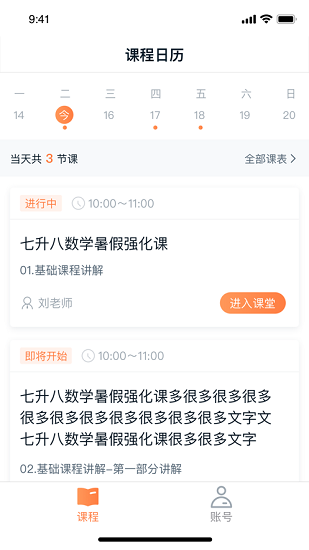 提供直播課程觀看,課程回看,已購課程課程表查看功能。