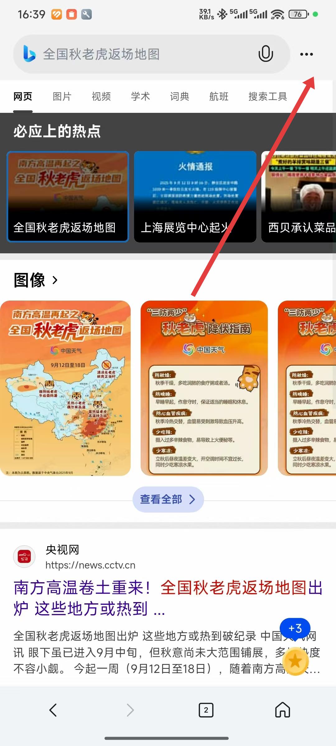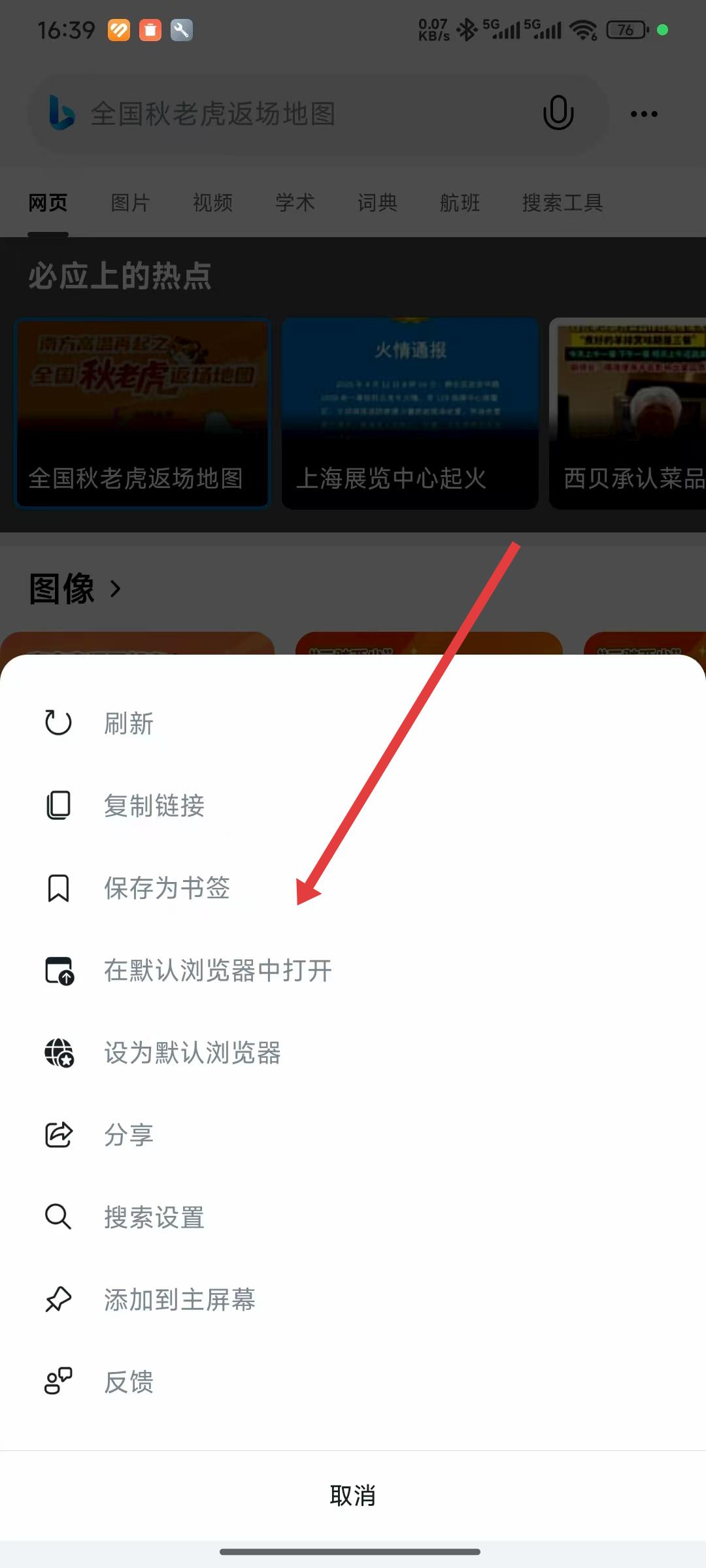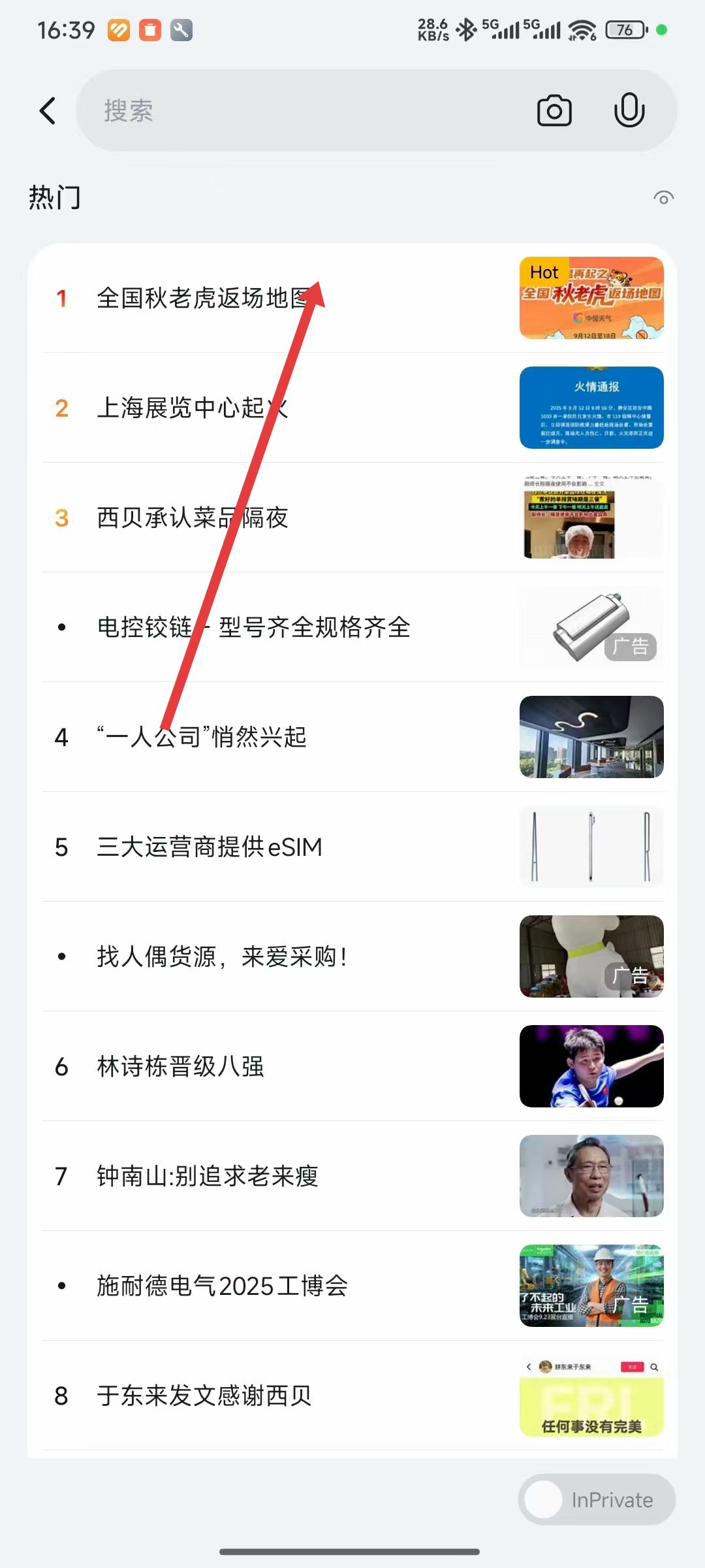 2、在熱門搜索中選擇感興趣的話題,點擊想要保存為書簽的頁面。
