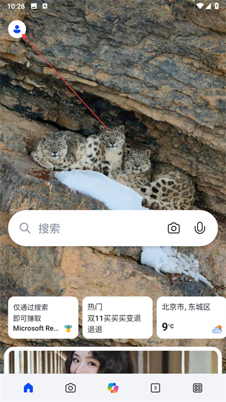 1、打開Bing應用,點擊左上角的用戶圖標。