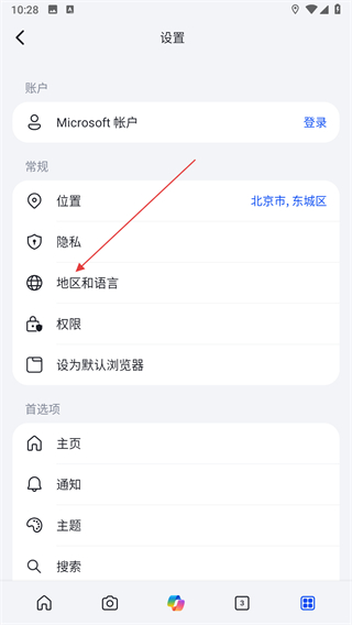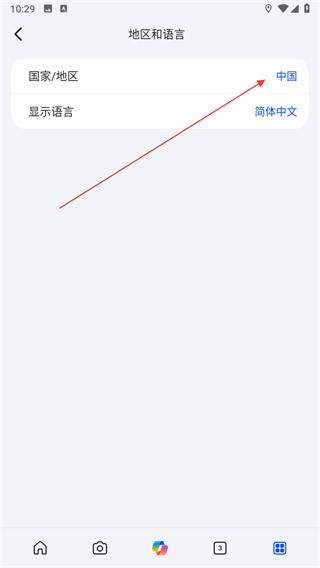 4、在地區(qū)和語言頁面,點擊國家/地區(qū)選項。