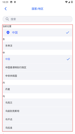 5、在國家/地區(qū)列表中,選擇你想要更改的地區(qū)。