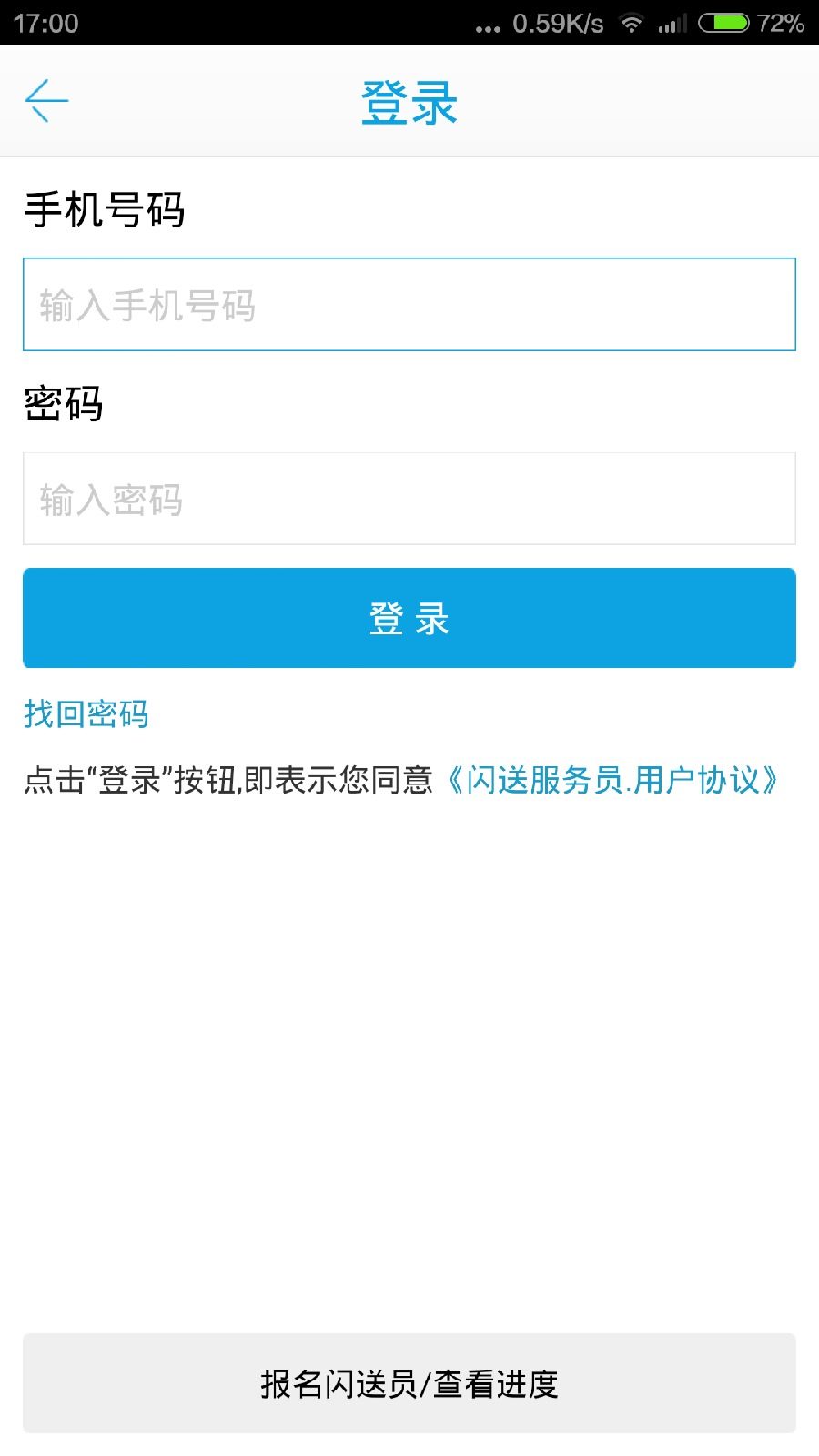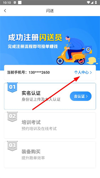 2、進(jìn)入app點(diǎn)擊閃送員報(bào)名按鈕提交個(gè)人資料進(jìn)行報(bào)名;