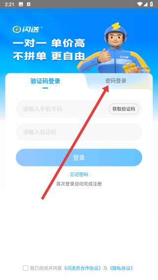 2、進(jìn)入到登錄界面中,可以點(diǎn)擊密碼登錄按鈕,切換登錄方式。
