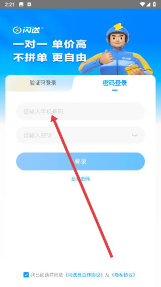 3、切換登錄方式后,先點(diǎn)擊下方按鈕,勾選同意協(xié)議條款。