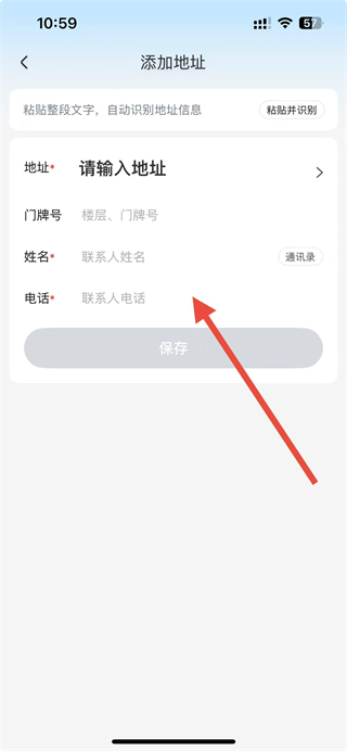 4、在添加地址頁面輸入地址、門牌號、姓名、電話等信息,即可完成地址添加操作。