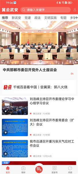 1、下載安裝好冀云武安app后,點(diǎn)擊注冊(cè)登陸賬號(hào),在首頁(yè)有豐富的新聞資訊,并且分有黨建/政法/文明實(shí)踐等不同欄目專題;