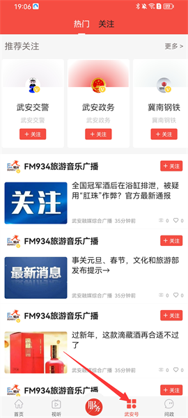 3、點(diǎn)擊【武安號(hào)】,可以看見(jiàn)系統(tǒng)有精選推薦豐富的武安政務(wù)公眾號(hào),大家可以根據(jù)自己的興趣選擇關(guān)注,關(guān)注之后,該平臺(tái)發(fā)布信息都能第一時(shí)間通知大家;