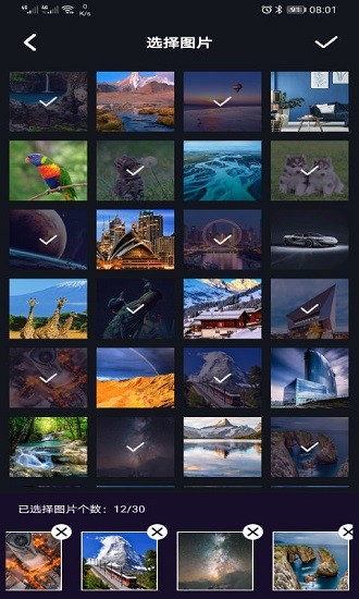 挑選:依次挑選出你想要合成在音樂相冊中的數(shù)張照片