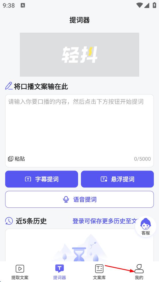 1、打開輕草提詞器,點(diǎn)擊首頁右下角我的。