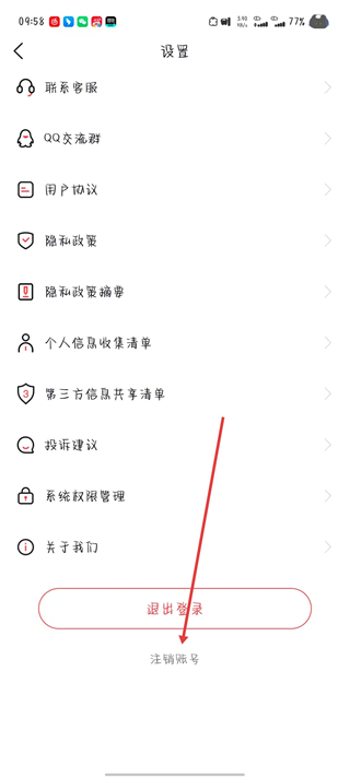 2、進入設(shè)置頁面后,點擊最下方的注銷賬號選項。