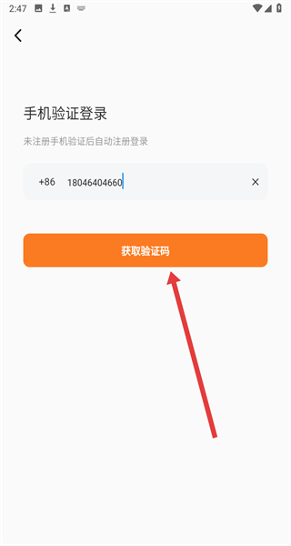 3、在手機驗證登錄界面輸入手機號后,點擊“獲取驗證碼”。
