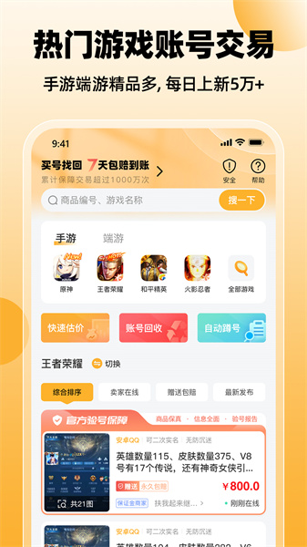 戲仔最新app提供賬號價值評估,賬號回收,賬號代售和賬號擔保服務(wù)。目前多類賬號交易業(yè)務(wù)。致力于保障用戶賬號交易權(quán)益,為我們的核心宗旨!平臺涵蓋了各類游戲賬號交易賬號租賃等等服務(wù)業(yè)務(wù),方便快捷的服務(wù)用戶,讓用戶更安心,更放心,更省心。