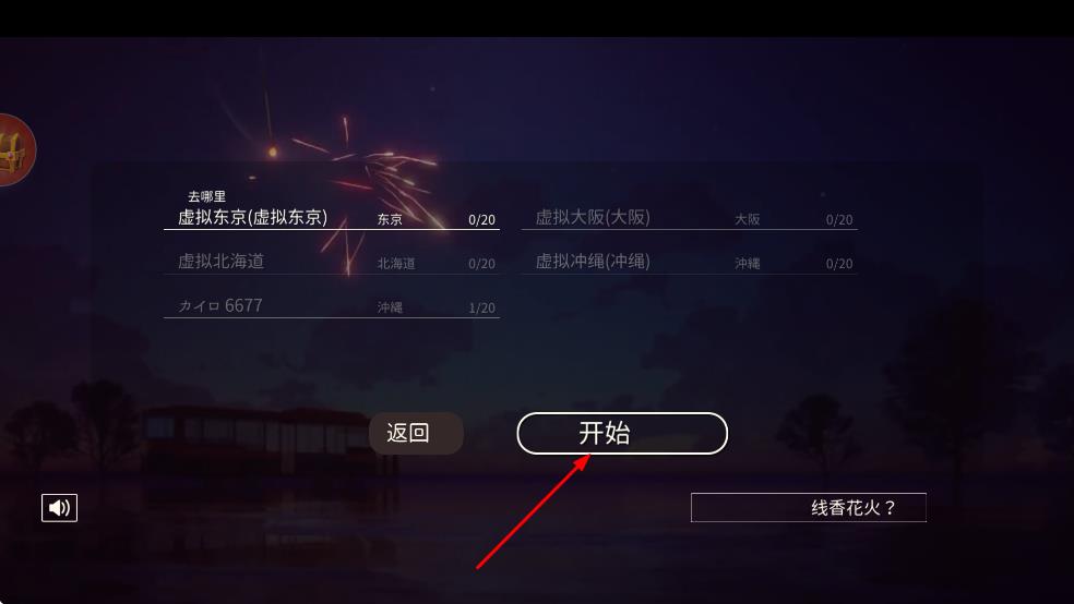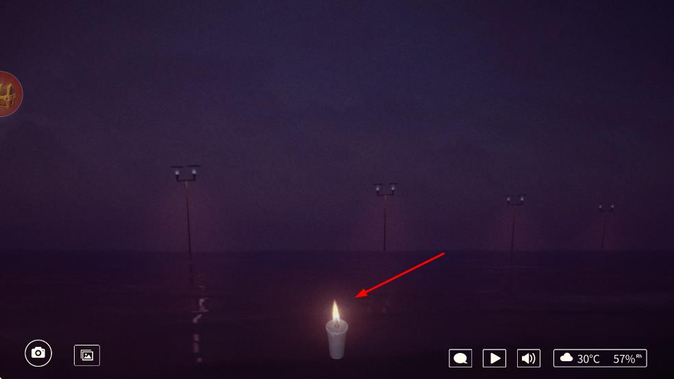 2、選擇好地點(diǎn)后,點(diǎn)擊開始,進(jìn)入煙花模擬場(chǎng)景,此時(shí)能看到場(chǎng)景中有蠟燭等元素,等待后續(xù)煙花效果呈現(xiàn)。