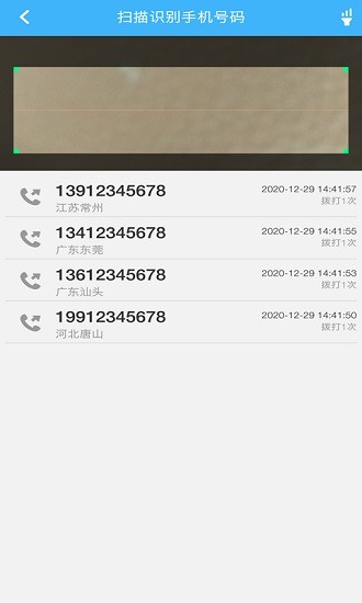 4、可以直接掃描電話號碼,也可以語音錄入,輸入11位手機號自動跳到下一條。