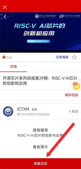 3、在直播詳情頁點擊觀看回放,即可觀看該直播的回放內(nèi)容。