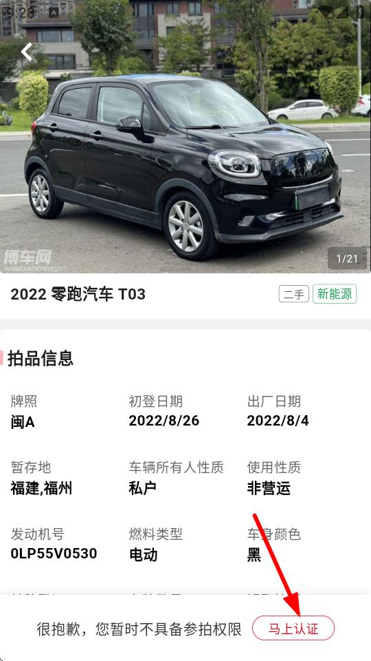 4、在車輛詳情頁面,可查看車輛的更多詳細信息,若未認證可能會提示認證,按指引操作即可。