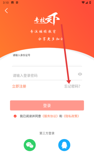 1、在登錄頁面中,若忘記了密碼,可以點擊下方忘記密碼按鈕進(jìn)行解決。