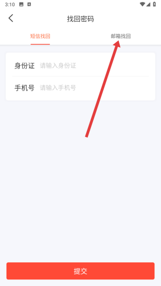 2、在進(jìn)入到找回密碼頁面中,可以點擊右側(cè)按鈕使用郵箱找回。