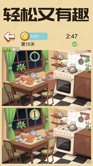 3、經(jīng)典的找不同游戲,尋找兩幅圖的細微差別,挑戰(zhàn)眼力極限;
