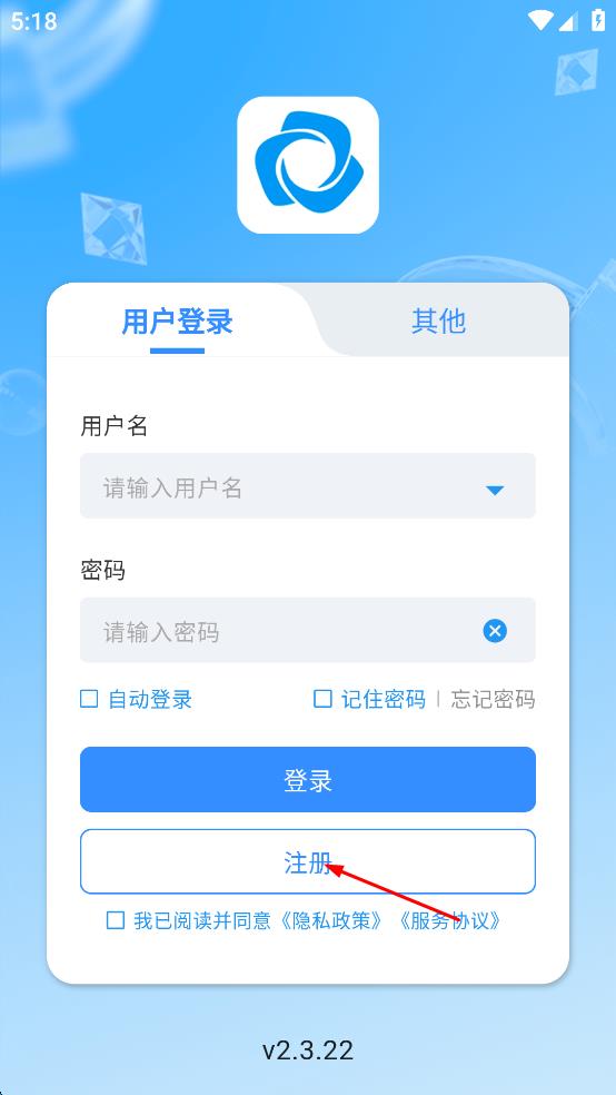 a.打開安裝好的app,點(diǎn)擊注冊(cè);