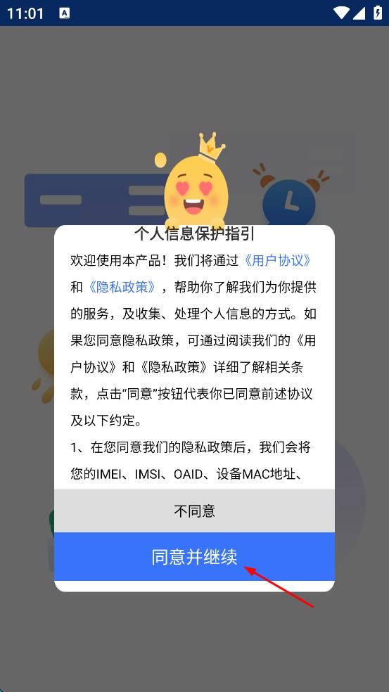 1、打開該APP,會出現(xiàn)個人信息保護指引界面,仔細閱讀后點擊“同意并繼續(xù)”,進入軟件主界面。
