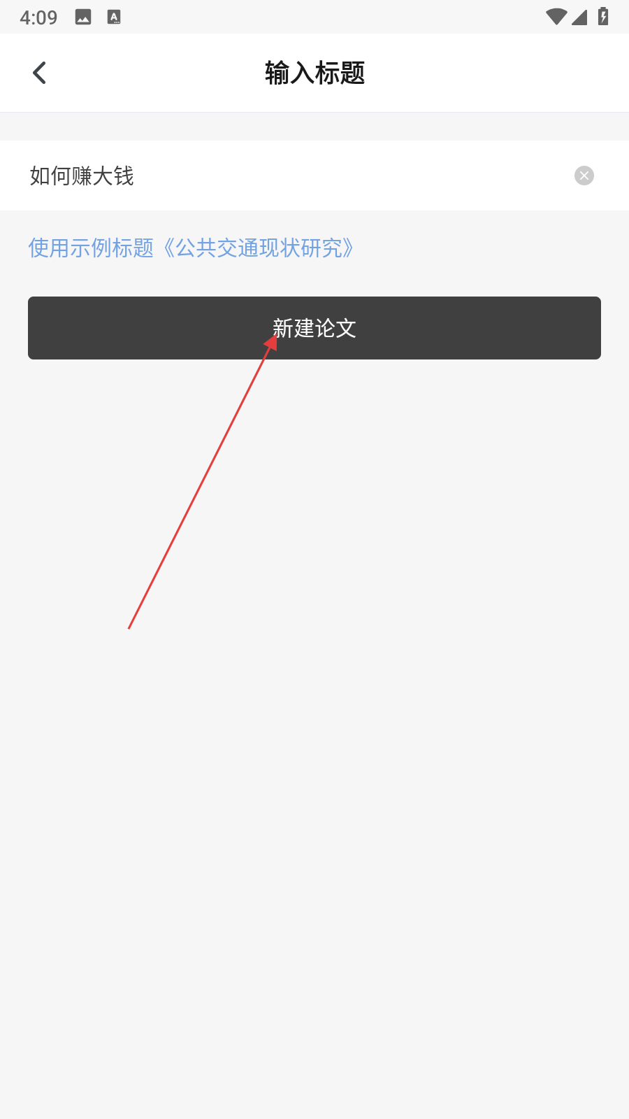 2、進入輸入標題頁面,在輸入框中填寫論文標題,然后點擊新建論文按鈕。