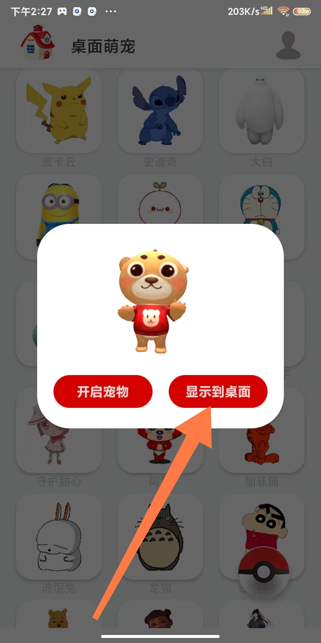 4、獲取萌寵后,點擊顯示到桌面按鈕,即可將該萌寵設(shè)置到桌面。