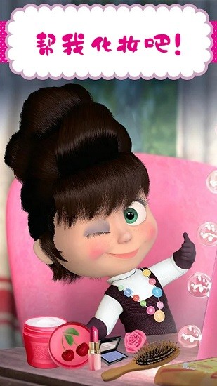 2、伴隨著游戲中多種的化妝品選擇,寶寶們可以讓她的新朋友,瑪莎、熊和動(dòng)物們變得更加美麗!