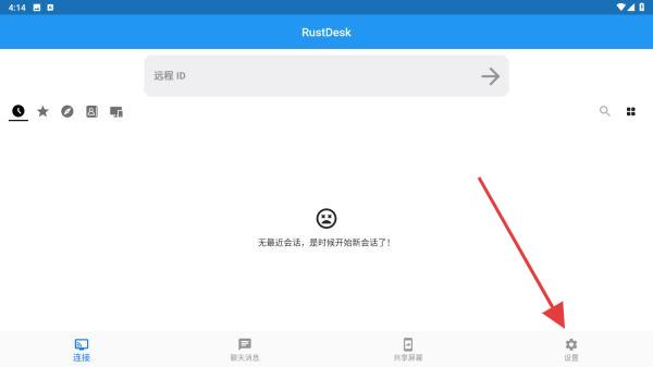 1、打開RustDesk的應(yīng)用軟件,點擊右下角齒輪設(shè)置的圖標(biāo)。