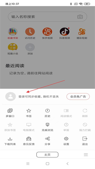 2、在下方彈出菜單欄中,點(diǎn)擊上方登錄可同步收藏的區(qū)域。