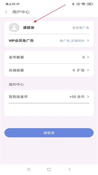 3、進(jìn)入用戶中心的界面內(nèi),點(diǎn)擊上方請登錄的區(qū)域位置。
