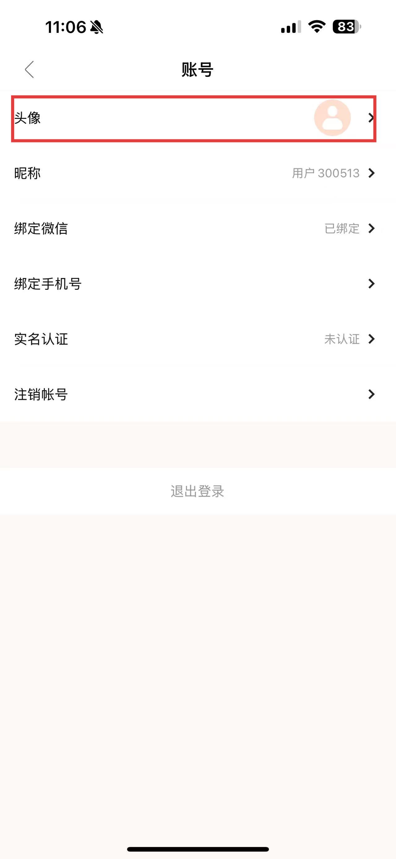 3、在賬號(hào)設(shè)置界面里,點(diǎn)擊頭像選項(xiàng),可選擇本地圖片上傳來更換頭像。