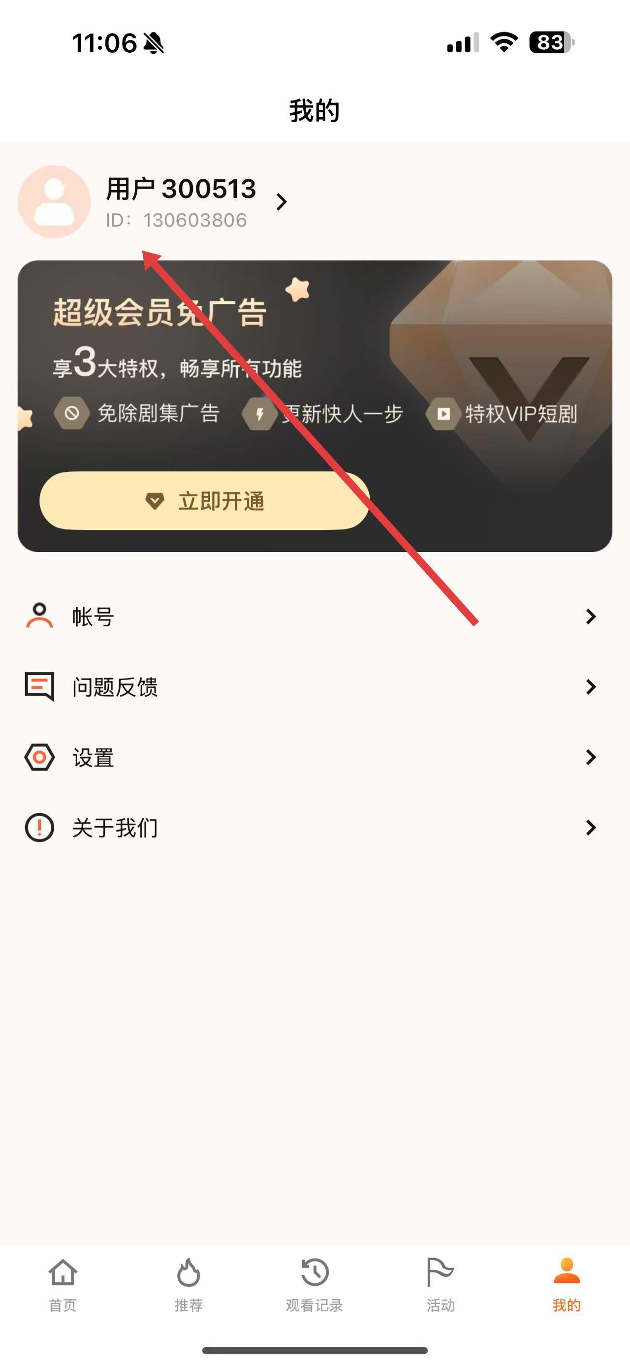 2、在個(gè)人頁(yè)面中,點(diǎn)擊頭像和昵稱區(qū)域用戶300513,進(jìn)入賬號(hào)設(shè)置界面。