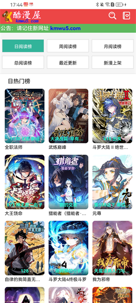 2、點擊排行榜,可以看見有總閱讀榜、月周日詳細分類,以及最近更新和最新漫畫上架,便于大家快速找到自己喜歡的漫畫;