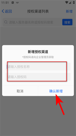 3、在彈窗中輸入授權(quán)名稱和授權(quán)碼,點擊確認新增。
