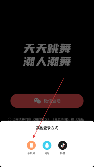 1、打開天天跳舞APP,點擊其他登錄方式。