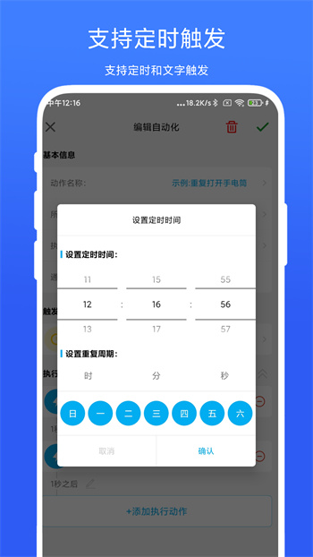 用戶可以設(shè)置定時時間執(zhí)行自動化,如:早上八點釘釘打卡,中午12點設(shè)置靜音,晚上九點打卡飛行模式等等。