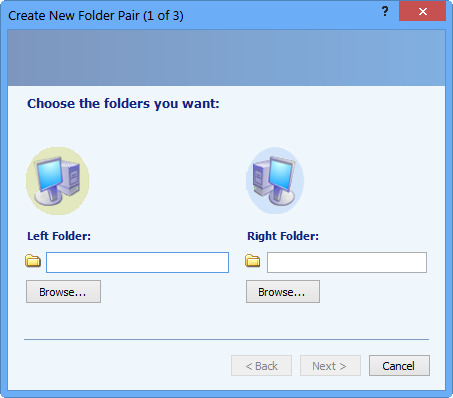 1.點(diǎn)擊軟件下方的Create New Folder Pair按鈕,選擇兩個(gè)需要同步的目錄