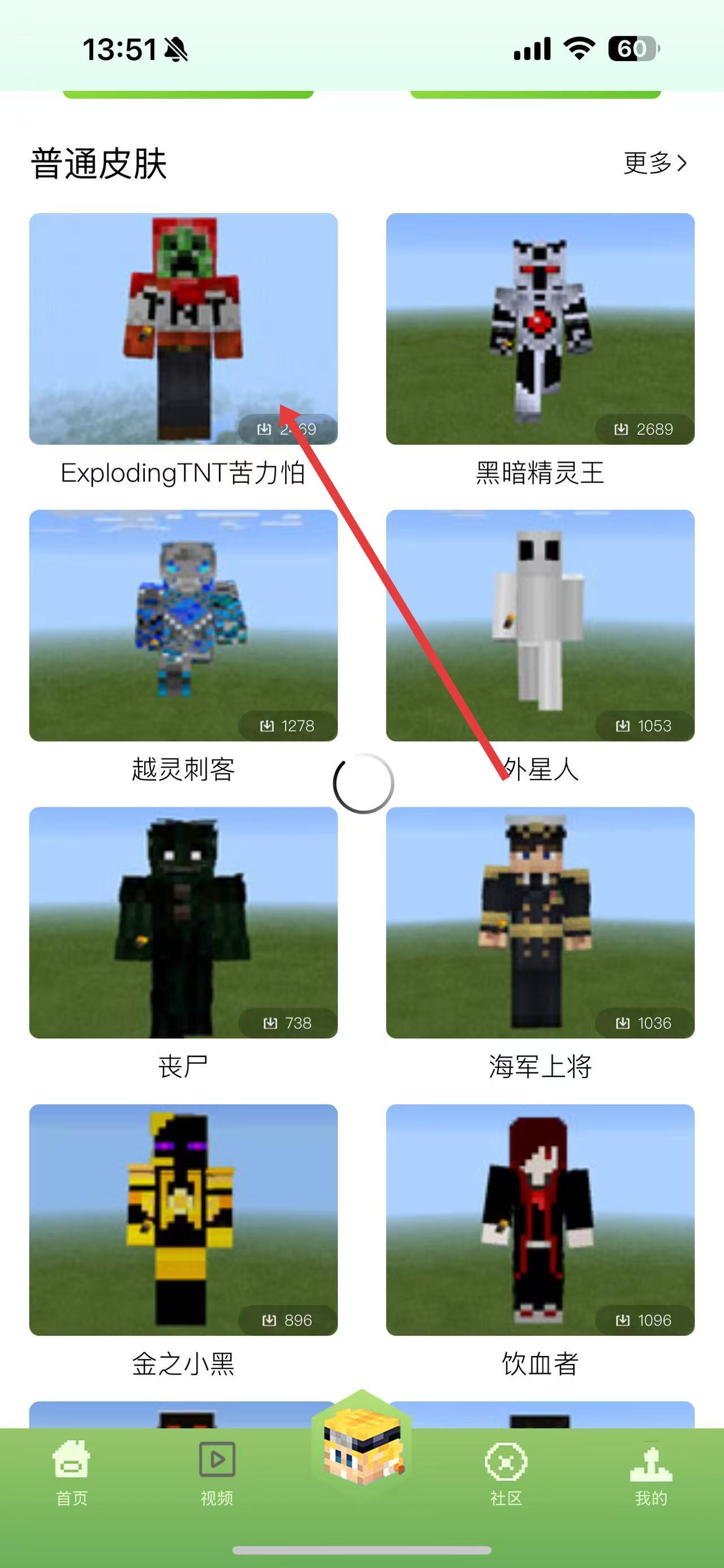 1、打開我的世界基巖版大師盒子應(yīng)用,點擊底部導(dǎo)航欄中間圖標(biāo)進(jìn)入皮膚頁面。
